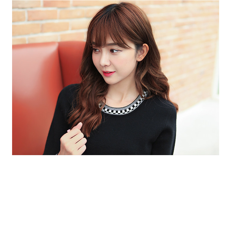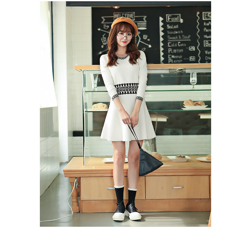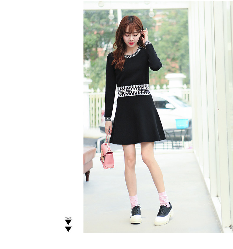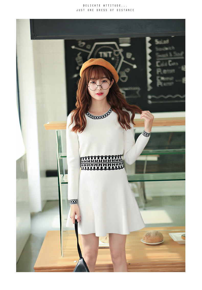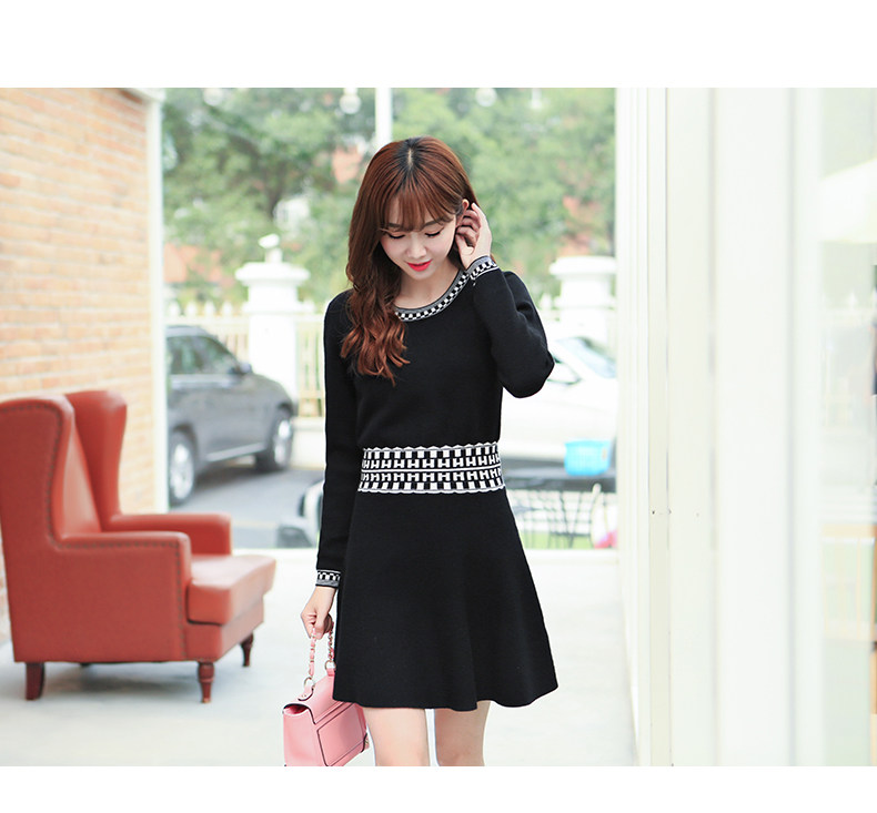 <EPTISON> New Korean Style Round Neck Dress/2015冬装新款连衣裙 圆领套头韩版长袖针织连衣裙女冬