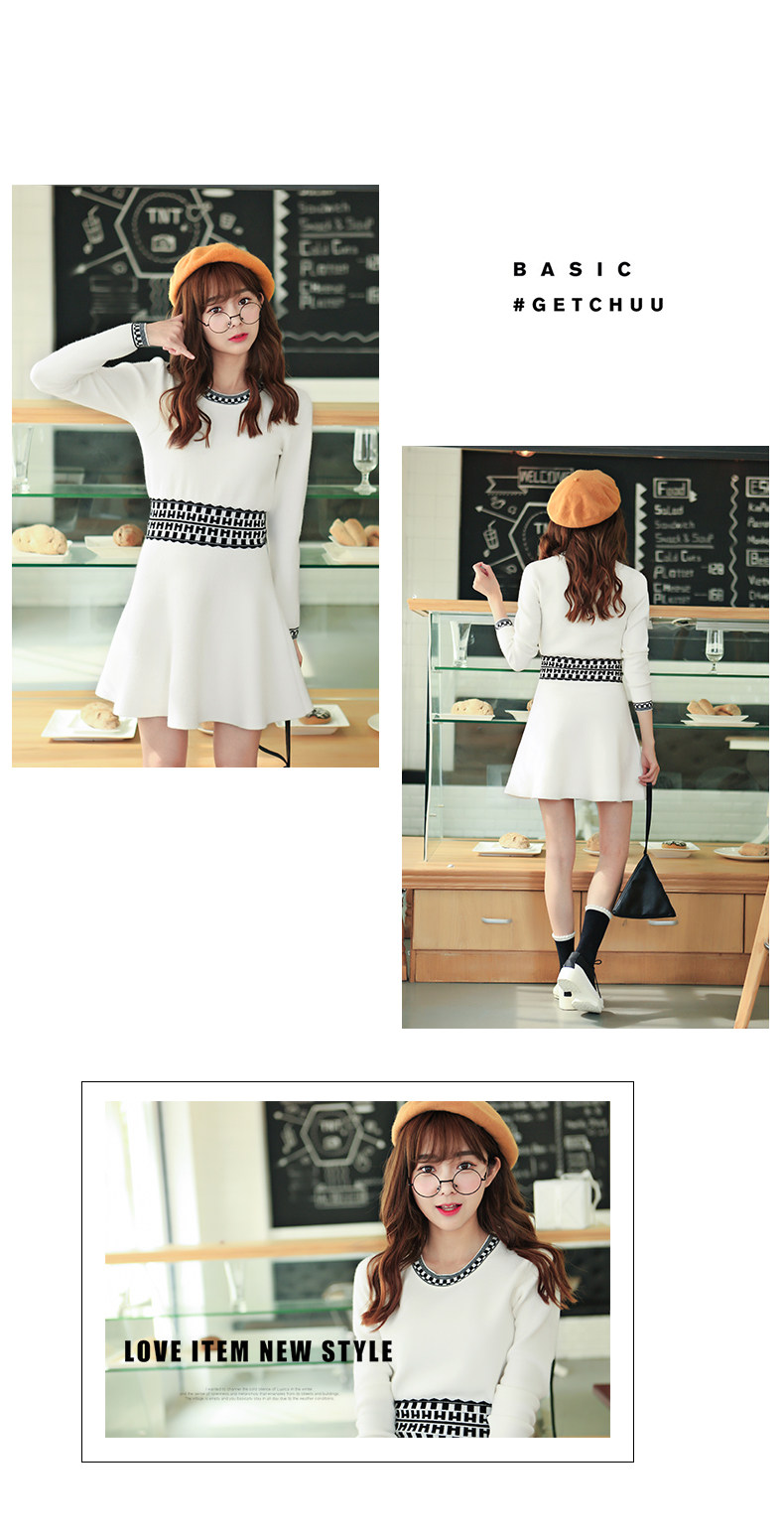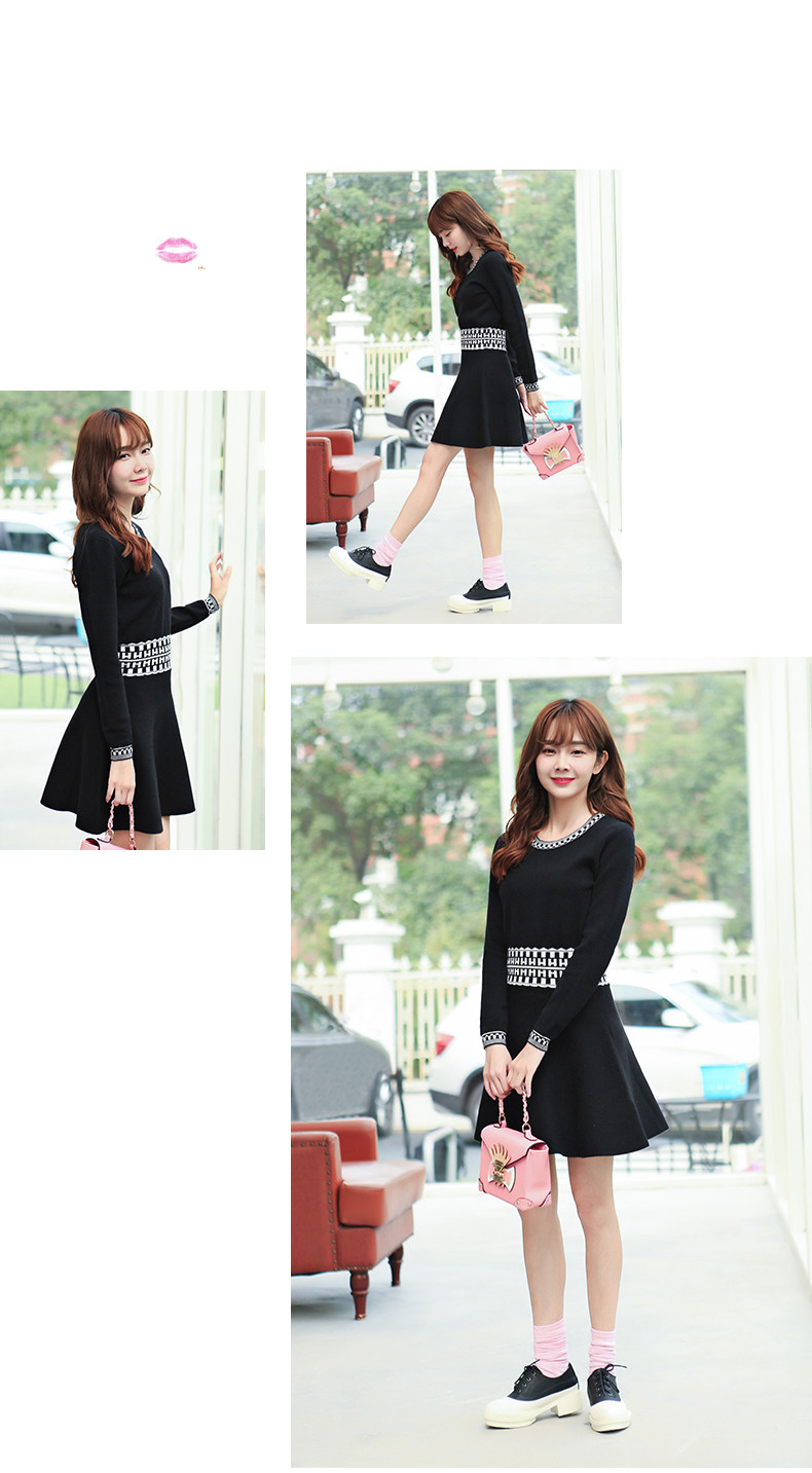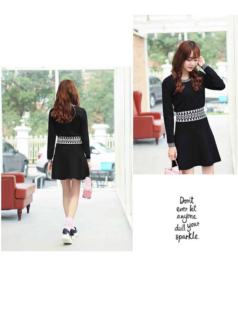 <EPTISON> New Korean Style Round Neck Dress/2015冬装新款连衣裙 圆领套头韩版长袖针织连衣裙女冬