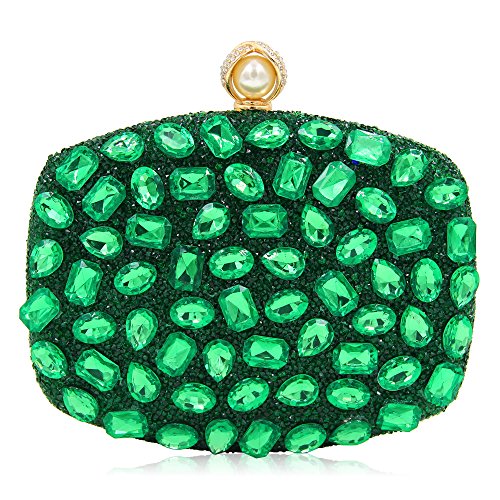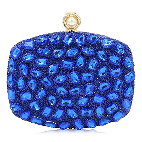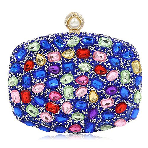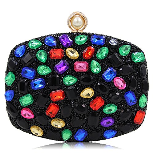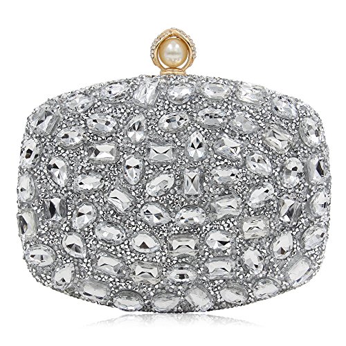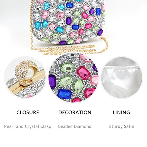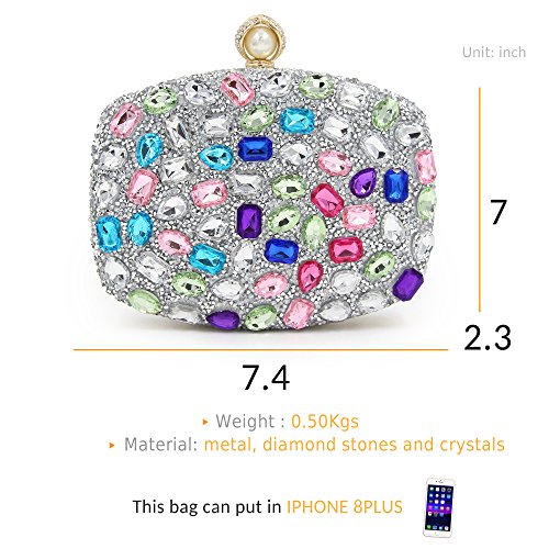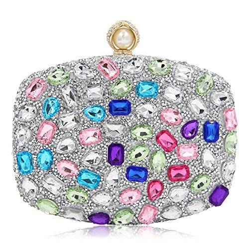 Unique Design -- Multicoured Silver Crystals and Beaded Diamonds Studded on the Causal Clutch Purse With Crystal Top Pearl Clasp Style Closure.