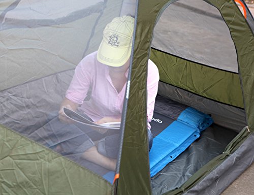 Made with a breathable, tough polyester canopy and coated polyester rainfly and floor with factory-sealed seams for waterproofness.Pole material:fiber glass