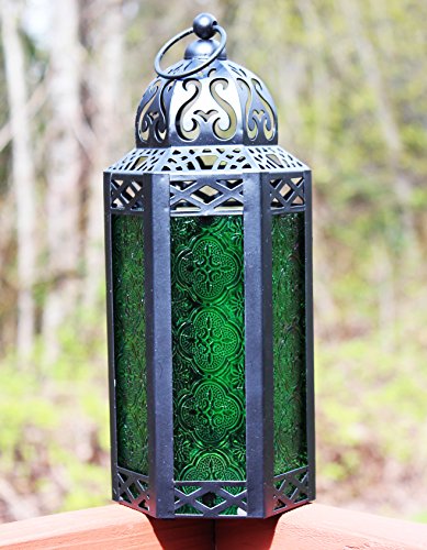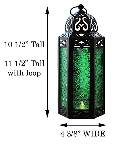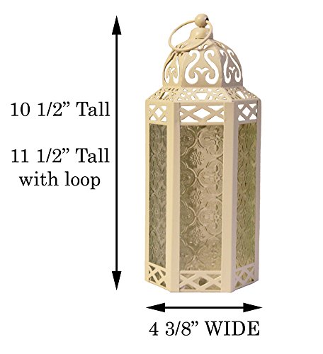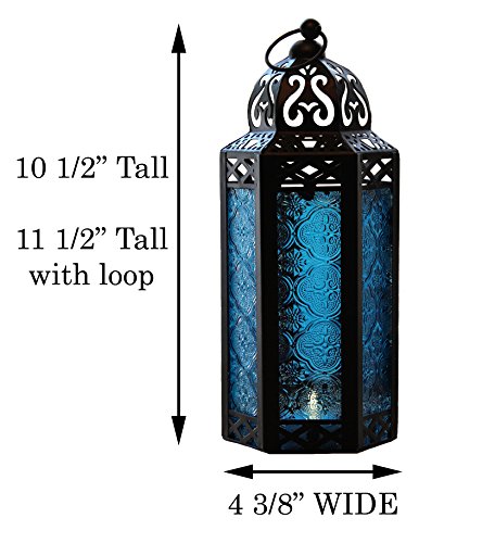 -. Feature : hanging Amber Glass / Mid Size Table / Hexagon Moroccan Candle Lantern Holders / Iron and glass. Uses tea-light, votive or small pillar candles up to 3″ x 3″. 4 1/4″ x 3 3/4″ x 10″ tall, 11 1/4″ tall with loop / Home garden decoration