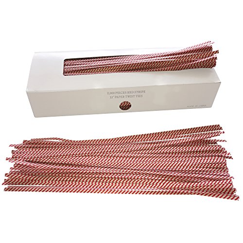 2000 Pack 12" Long 3/16" Wide Paper Coated Twist Ties (Red Stripe)