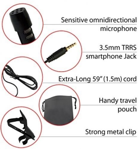 -. Title : Lavalier Lapel Clip-on Omnidirectional Microphone Hands-free Condenser Mic for iPhone, iPad, iPod Touch, Samsung Android and Windows Smartphones, Youtube, Karaoke &Interviews Video & Audio Recording