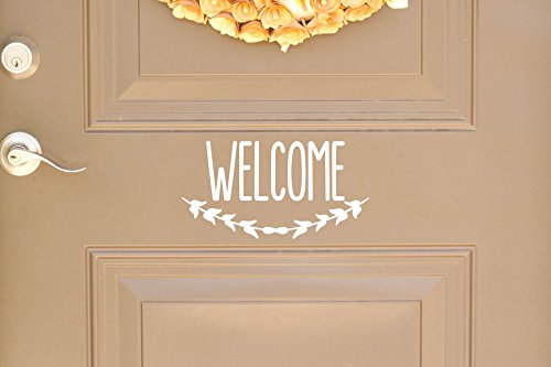 Welcome Vinyl Front Door Decal - Welcome Vinyl Decal with Laurel Wreath Symbol, Home or Business Decal 9.5" W x 5" H