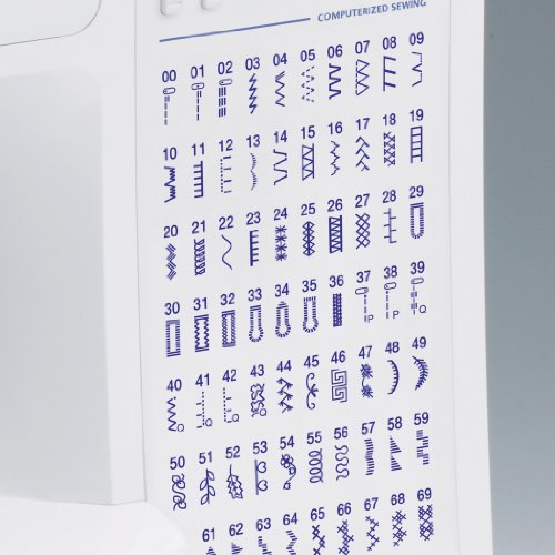 70 stitches, customize in style with built-in clothing, decorative, heirloom and quilting stitches