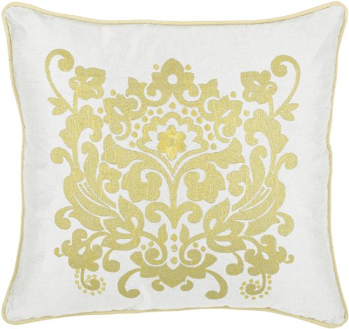 Rizzy Home T-3893 Decorative Pillows, 18 by 18-Inch, Yellow/White