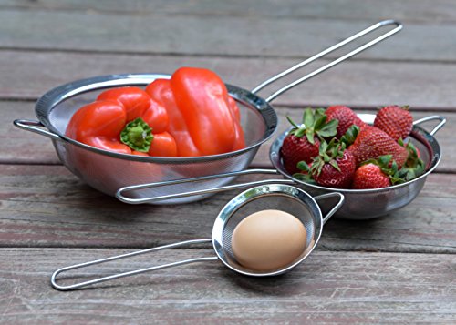 - Title : Food Strainers Fine Mesh Stainless Steel | Sieves with Handles | Set of 3 Fine-mesh Colanders Warranted for Life | Strain Bouillon Soup Yogurt | Wash Quinoa Rice Vegetables Pasta | Sift Flour Loose Tea