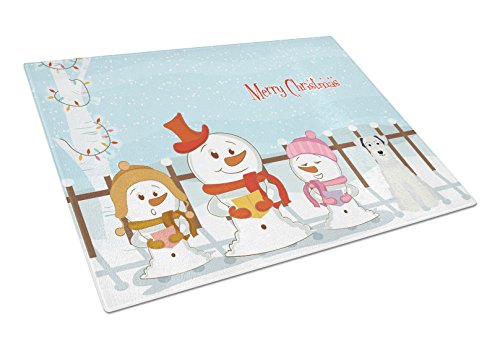 Caroline's Treasures BB2384LCB Merry Christmas Carolers Miniature Schanuzer White Glass Cutting Board, Large, Multicolor