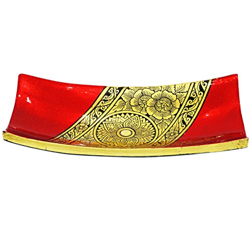 Suwandara Wooden Lacquerware Square tray 5"×10" (Red&Thai Art)