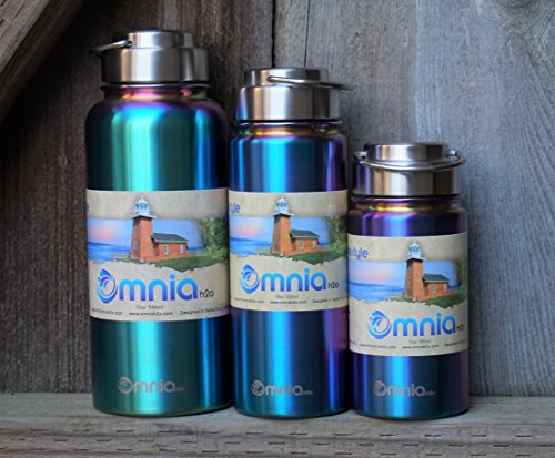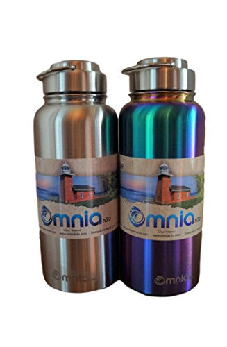 Omnia h2o Canteen - 32oz Vacuum Insulated Stainless Steel Water Bottle - Wide Mouth Flask with All Metal Lid - Enjoy Hot and Cold Drinks in this Sweatproof Water Bottle