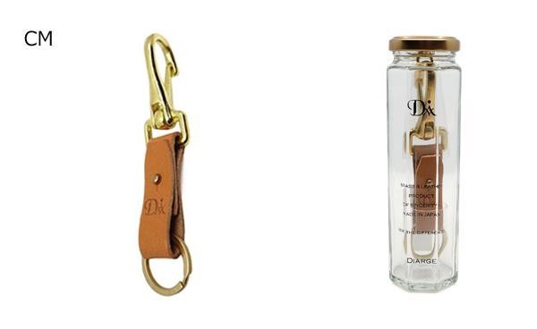 | 真鍮製フックと二重リングと牛革で構成されたキーリングです。万有引力の法則に従い垂直になるように設計された吊り下げ式のグラスボトルパッケージは、インテリアに映えてギフトにも最適です。 |