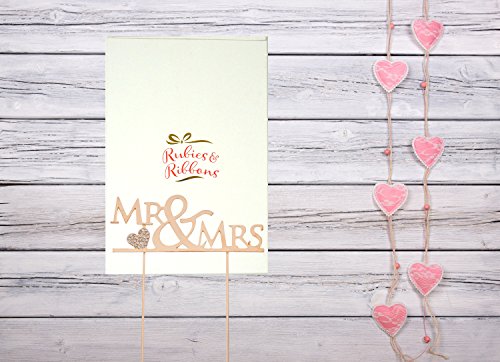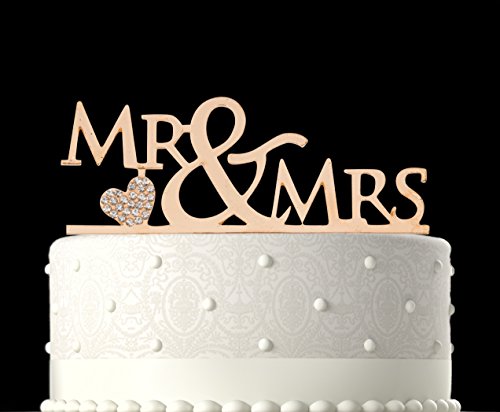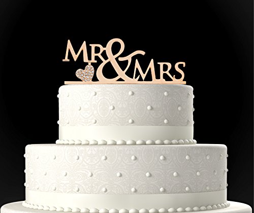 Rubies & Ribbons "Mr & Mrs" Gold Metal with Rhinestones Wedding Cake Topper Party Decoration with Gift Box