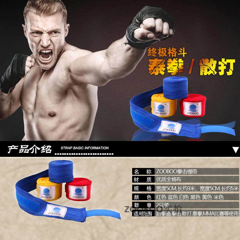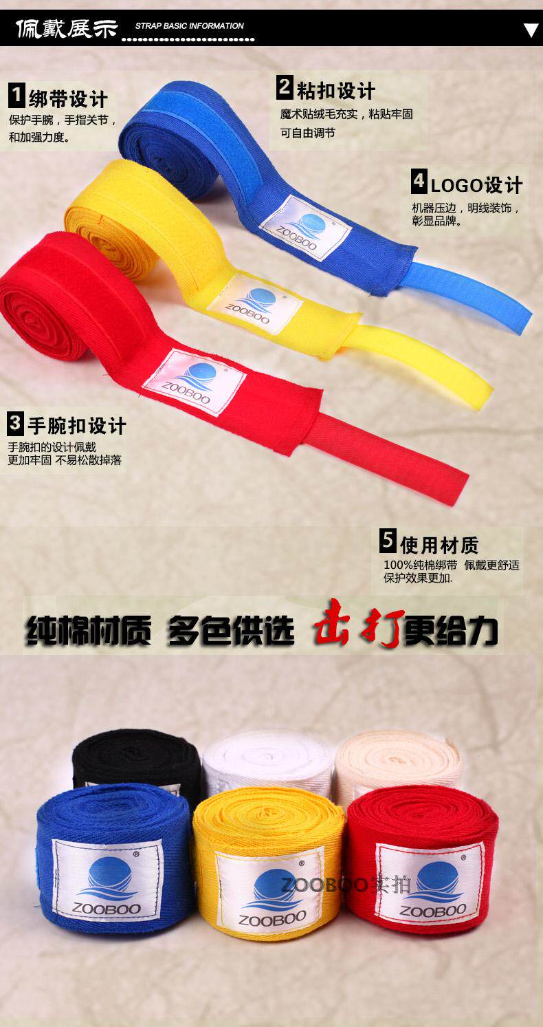 Zooboo/逐波 拳击绷带散打泰拳护手带缠手带绑手带护腕3米5米