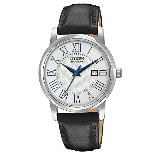 ReleaseDate : 2013-01-15 Studio : Citizen Publisher : Citizen Binding : Watch Product Description Online Exclusive! This ladies' Citizen watch features Eco-Drive® technology which means it never needs batteries and runs on light. This watch also features a silver dial with blue tone hands, brushed and polished stainless steel case with leather bracelet, and is water resistant up to 30 meters. Model # EW1568-04A 0
