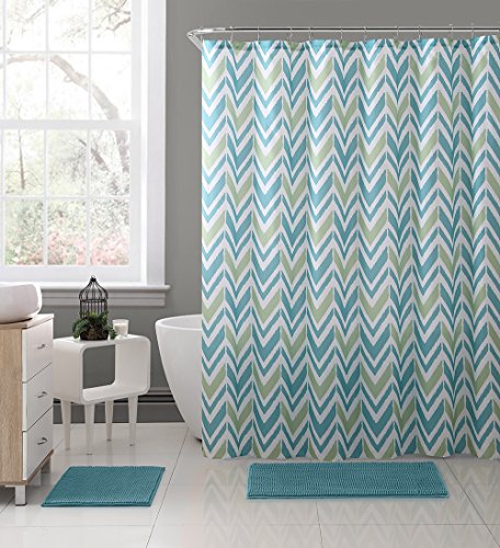 Royal Bath 2 Tone EKG Chevron Embossed Microfiber Fabric Shower Curtain (72" x 72") - Blue/Green