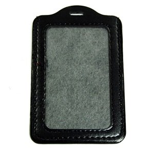 Cosmos ® Black 5 Pcs Faux Leather Business ID Badge Card Holder - Vertical (Top Loading) with Slot & Chain Holes with Cosmos Fastening Strap