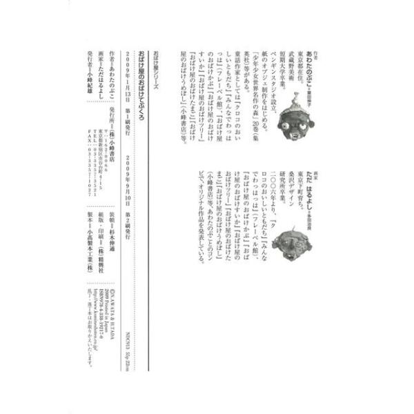 【商品基本情報】 商品名称:おばけ屋のおばけてぶくろ 著者/出版社:あわた のぶこ/あわた のぶこ 初版発行日:2009/01/13 サイズ:A5判 ページ数:51 ISBN/JAN:9784338192170/4528189405400
