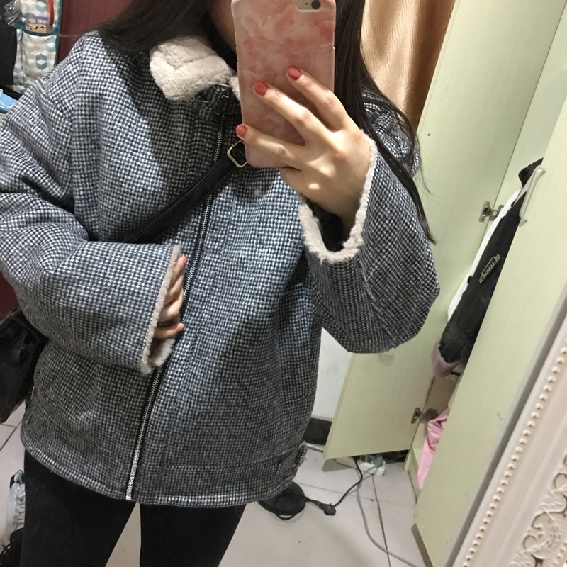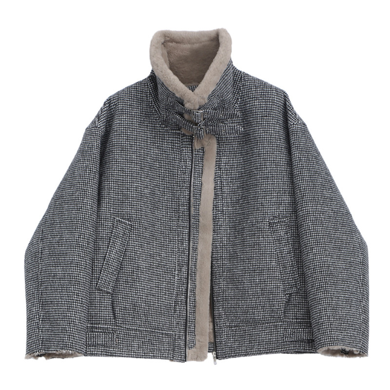 レトロな千鳥柄が総柄のボアジャケットです♬ 裏のボア素材が暖かみを感じさせます!