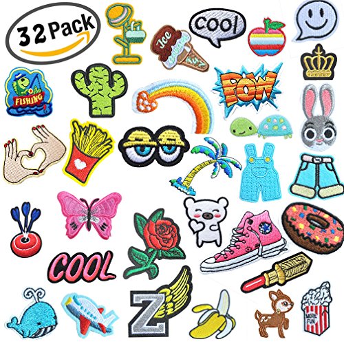 - 【32 PCS!!!】 High Fashion favors these elements this year. If there are broken holes or scars on clothes, you can use these patches to cover, and the bright colors and special patterns make them more attractive.Size: Mixed 2-14cm; Color: Mixed colors.