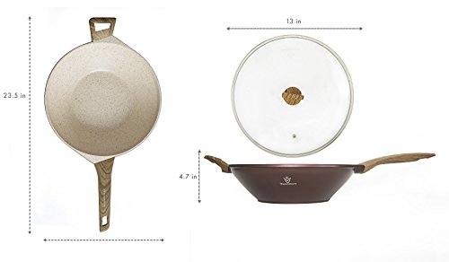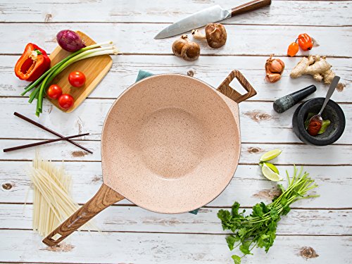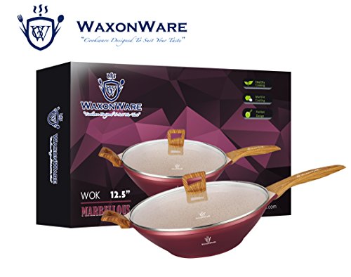 With its amazing non-stick properties and colorful design, the WaxonWare MARBELLOUS non-stick stir fry wok allows you to saute, deep fry, stir fry, bake, boil, grill and braise with very little amounts of oil making your food much tastier than before as it allows the food to cook in its own juices.