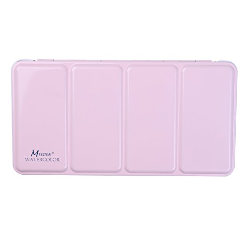 MEEDEN Empty Watercolor Tins Box Palette Paint Case, Large Pink Tin with 48 Pcs Half Pans
