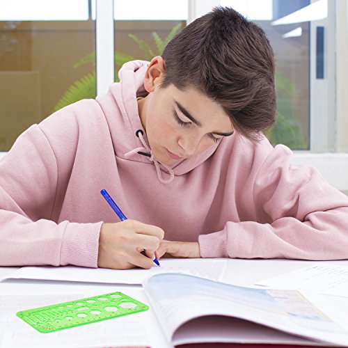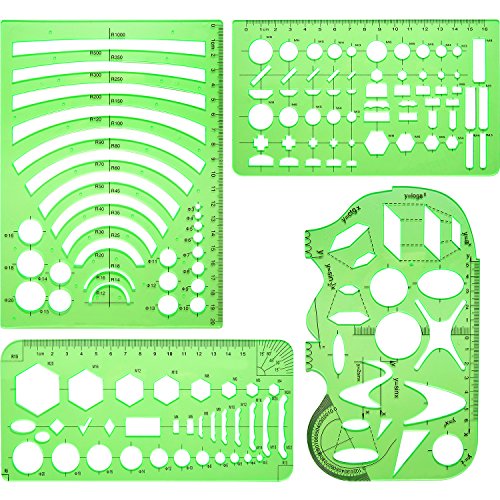 Frienda 4 Pieces Clear Green Plastic Measuring Templates Geometric Rulers Digital Drawing of Hollow Geometry Shapes for Office and School, Building Formwork, Drawings Templates