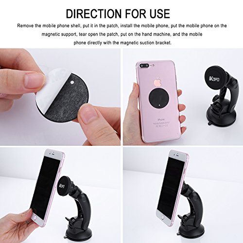 IKOPO Universal Magnetic Car Cellphone Mount Holder, Suitable for iPhone X 8/7/7Plus/6s/6Plus/5S, Galaxy S5/S6/S7/S8, Google Nexus, LG, Huawei and More Smartphone(Black)