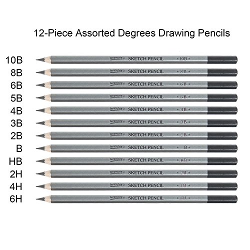 - PACKAGE - A wide variety of hardness for all your artwork needs. Includes 12 premium graphite pencils (6H, 4H, 2H, HB, B, 2B, 3B, 4B, 5B, 6B, 8B, 10B)
