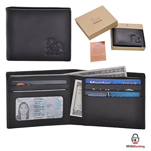 -. Feature : Genuine leather executive Estalon RFID BLOCKING Wallet is specially designed to carry currency note,Ids & credit cards, / This executive Wallet RFID BLOCKING Shielding technology completely encases and protects your valuable personal data, / FUNCTIONALITY: 2 Note Compartment, 2 id card, 7 credit card slots 2 Document compartment
