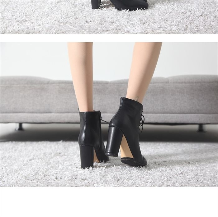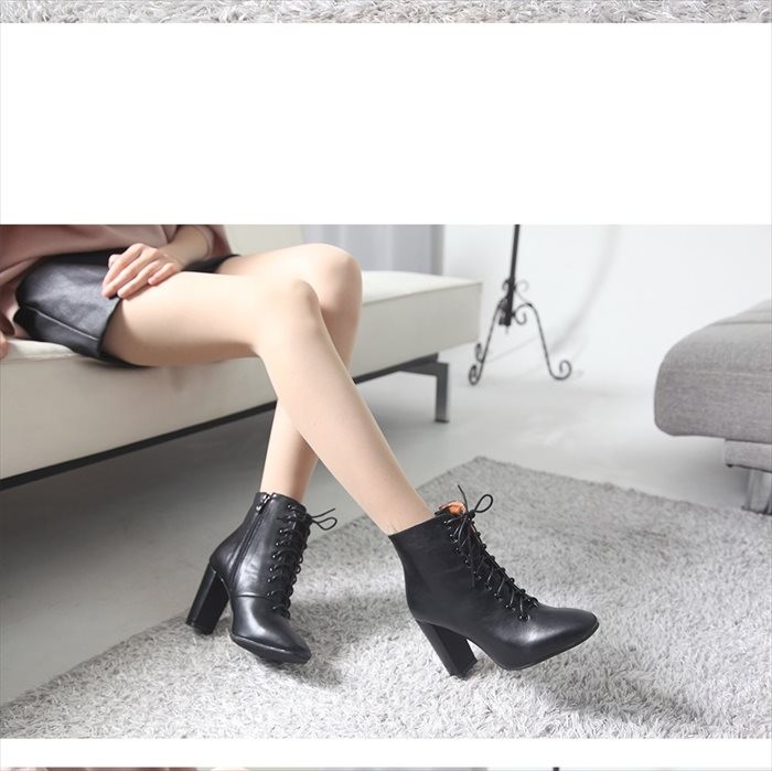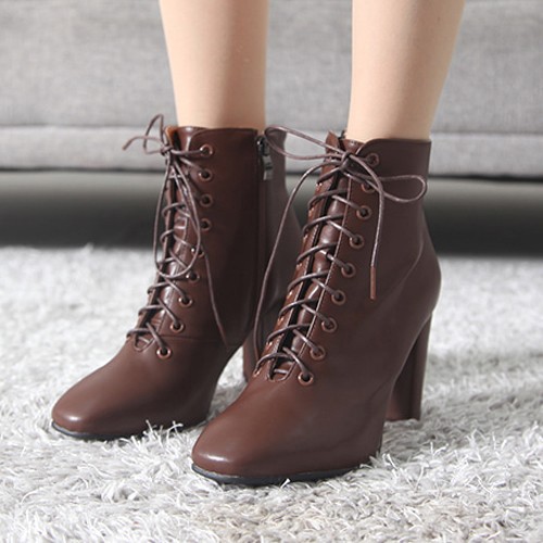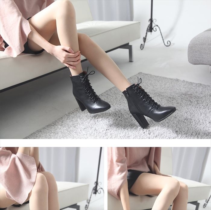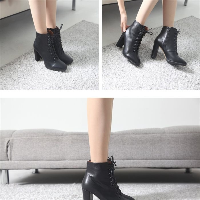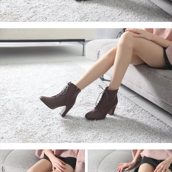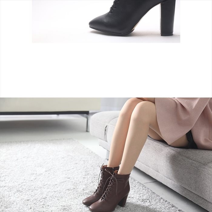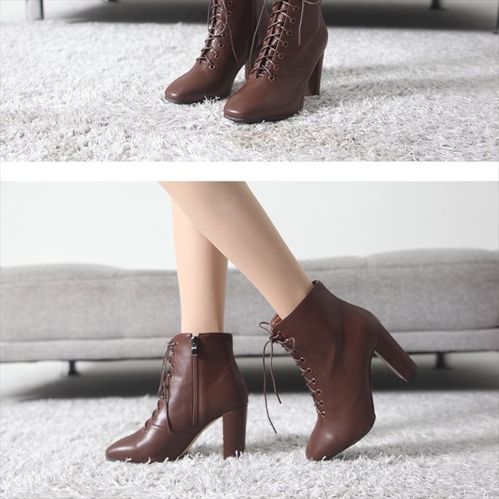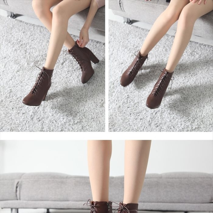 商品名:ブーティ レディース ブーティー チャンキーヒール 太ヒール レースアップ 2017 秋冬 ファッション 靴 婦人靴