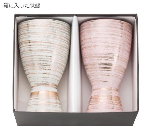 刷毛目から浮かび上がる金・銀のきらめきがテーブルの上で輝きを放ちます。 製造国:日本 素材・材質:陶磁器 商品サイズ:直径8.2×14.7cm 仕様:容量:約280ml電子レンジ・食器洗浄機使用不可 セット内容:ワインカップ×2 ※サプライヤー直送品 ご注文後2~3営業日後の出荷となります【商品名】雅姫 ペアワインカップ 913979 1189-049