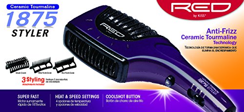 ReleaseDate : 2015-10-15 Studio : KISS PRODUCTS, INC. Publisher : KISS PRODUCTS, INC. Binding : Health and Beauty Product Description The red by kiss ceramic tourmaline hair dryer will help you get the style you always wanted. Ideal for hair drying, air brushing, smoothing, a quick-fix, or full styling. It includes three different attachments; a 100% boar bristle brush, a wide tooth comb, and a fine tooth comb. All the tools you need to create a wide range of styles with powerful 1875-watt power for more control over your styling experience. Ceramic tourmaline technology eliminates frizz and creates healthy, shiny, long-lasting results. When you are finished styling your hair, use the cool-shot button to cut the heat and lock in your curls. 0