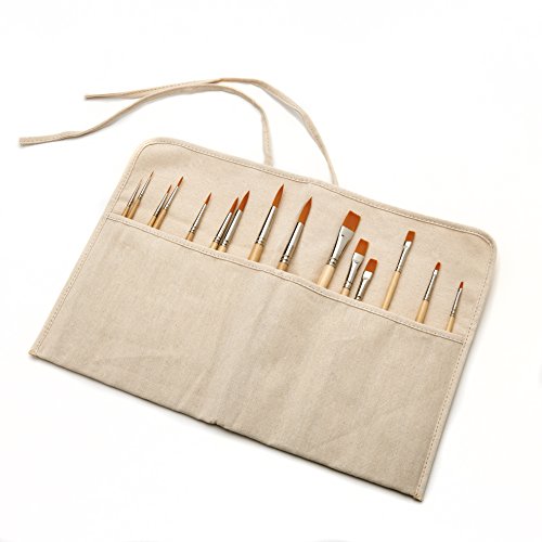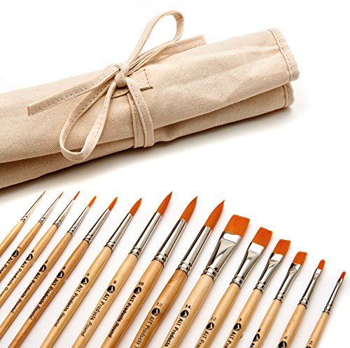 EXCELLENT VARIETY: This set includes a total of 15 round and flat short-handled brushes in a perfect range of sizes, so you'll always have the right brush when you need it. A FREE canvas brush holder is also included as a thank you.
