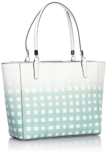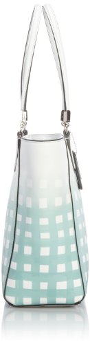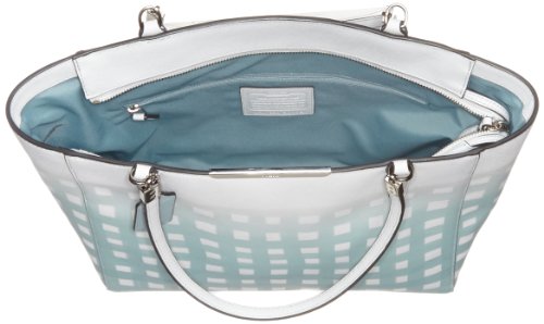 Crafted in textured Saffiano leather and covered with a cheerful, hand-painted print, this new tote combines edgy, gradient spring color with polished custom hardware and hand-worked details, like dimensional strap anchors and elegant edge painting.