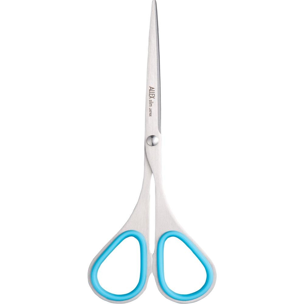 ハンドルは感触がソフトなエラストマーリングが付いて、やさしい指あたりです。 生産国:日本 素材・材質:ステンレス鋼+エラストマーリング 商品サイズ:本体サイズ:140×55×8mm、刃渡り:60mm 重量:20g ※サプライヤー直送品 ご注文後5~6営業日後の出荷となります【商品名】ALLEX アレックス スリム140 スカイブルー 11163S