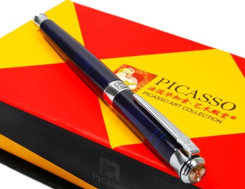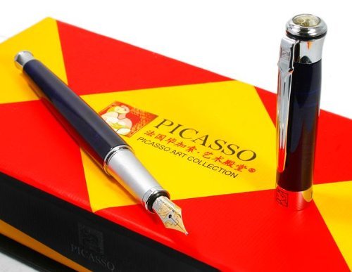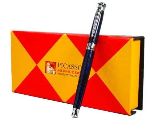 -. Title : Picasso Dark Blue Marble Style Gold Plated Fountain Pen