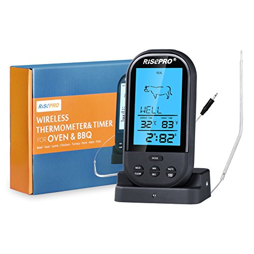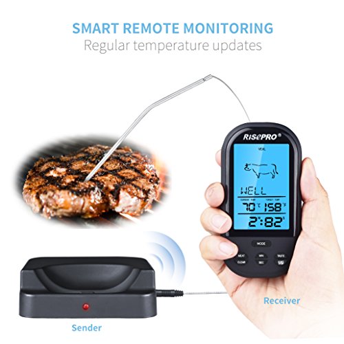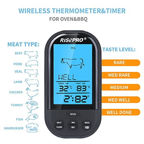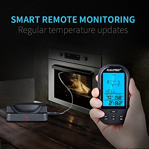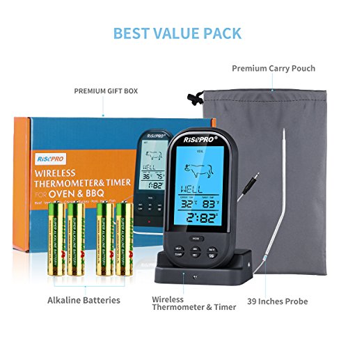 RISEPRO Wireless Grill Thermometer with Upgraded Oven-proved Probe, 572°F Heat Resistance, for Meat/Chicken/Pork/BBQ ET2515-BK