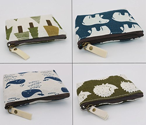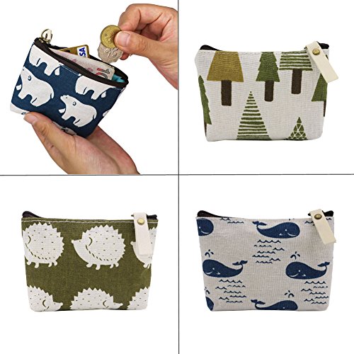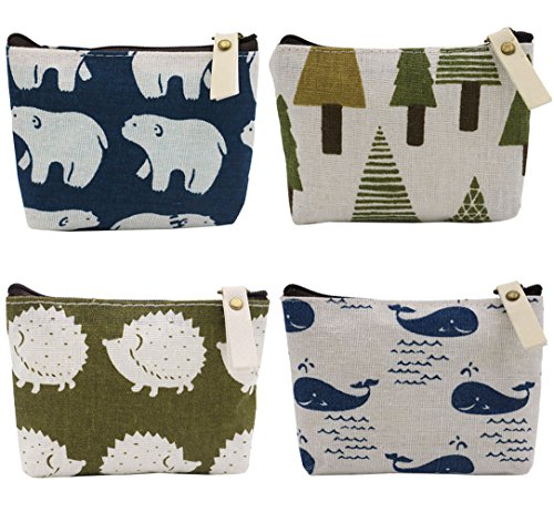 SOOKOO Animal Canvas Change Coin Purse Wallet Bag Gift with Zip and Liner, Pack of 4