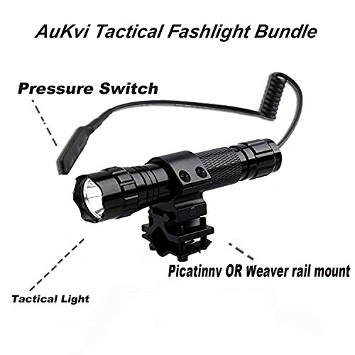AuKvi 500LM Tactical Flashlight Light+Pressure Switch For Picatinny Quad Rail Rifle With Barrel Mount (white light)