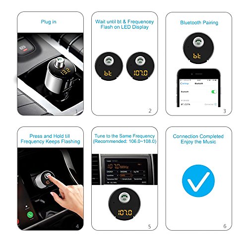 - ONE-BUTTON OPERATION & BROAD COMPATIBILITY: Easy one button operation for pausing,skipping song and adjusting volume or FM frequency.Wireless in-car Bluetooth FM Transmitter is well compatible with most Bluetooth enabled devices,such as Iphone,Ipad & More Smartphones , Tablets & MP3 Players!