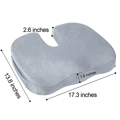 ZZCP Cool Gel-Enhanced Coccyx Memory Foam Seat Cushion More Effective and Durable Large Pillow Orthopedic Design to Relieve Back,Tailbone and Sciatica Pain or for Pregnancy, Including Gift Bag (Grey)