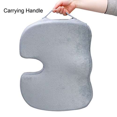 - ✔✔EASY CARRYING AND CLEANING--Your ZZCP memory foam coccyx cushion has a sturdy handle so you can take it along with you everywhere. Zippered velour cover is easily removed to clean just machine wash the gray cover and natural air dry for fresh and clean sitting all the time