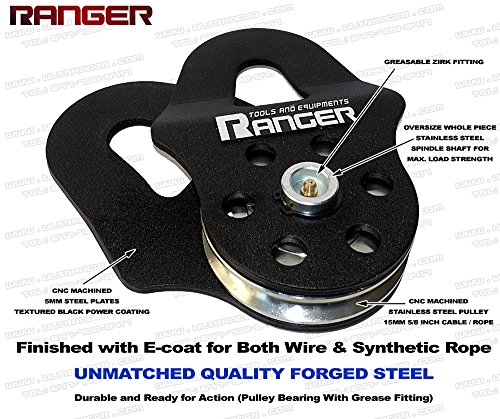 Ranger (10 Tons 22,000 LBs) Commercial Reliability Snatch Block with Grease Fitting by Ultranger