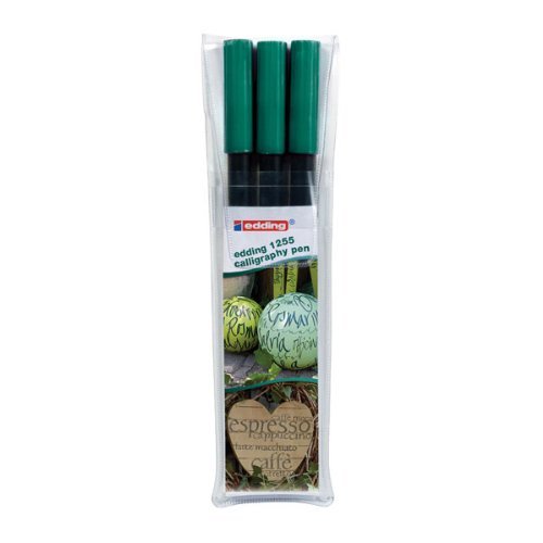 -. Feature : CALLIGRAPHY PEN SET by EDDING NEW COLOUR: BOTTLE GREEN / 3 Nib Sizes - 2mm / 3.5mm / 5mm / Comes in Handy Wallet of 3 Pens / Smooth Flowing Lightfast Water Based Ink. Ideal for Lettering & Creative Writing / For Use by the Profesional or Novice