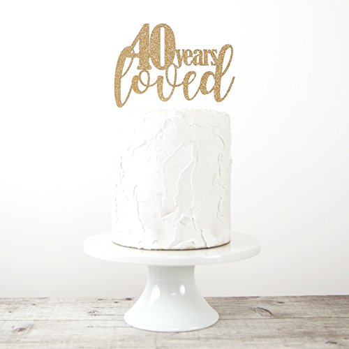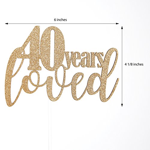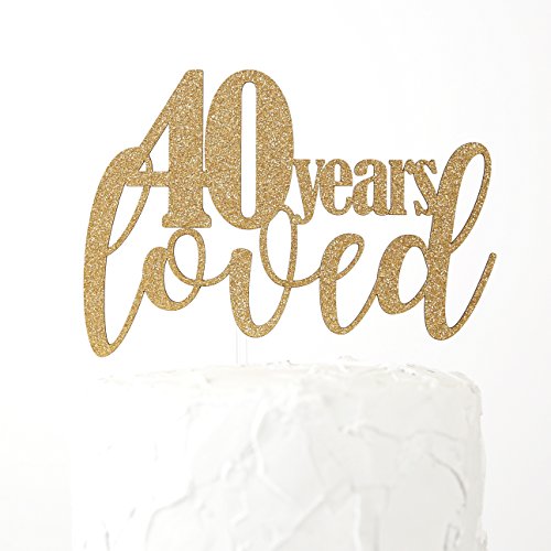 NANASUKO 40th Birthday/Anniversary Cake Topper - 40 years loved - Premium quality Made in USA - gold glitter