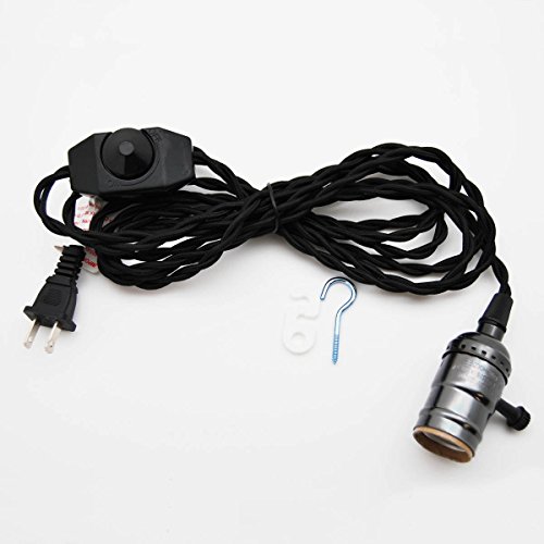 Whirled Planet Single Black Socket Vintage-style Pendant Light Cord w/ Dimmer, 11 Ft Twisted Cloth Cord (Black)