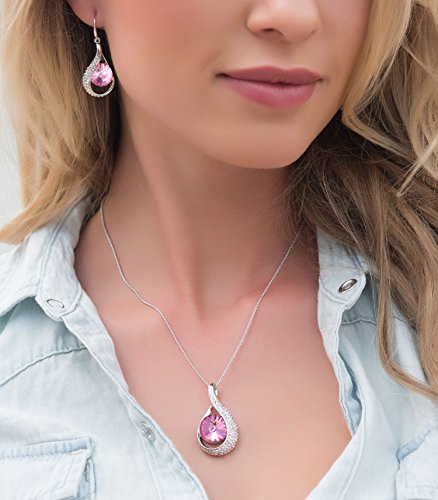 -. Title : [Presented by Miss New York] Leafael Swarovski Crystal Teardrop Shape Round Stone Pendant Necklace Earrings Set, Silver-tone, 17" + 2", Nickel/Lead/Allergy Free, Luxury Gift Box