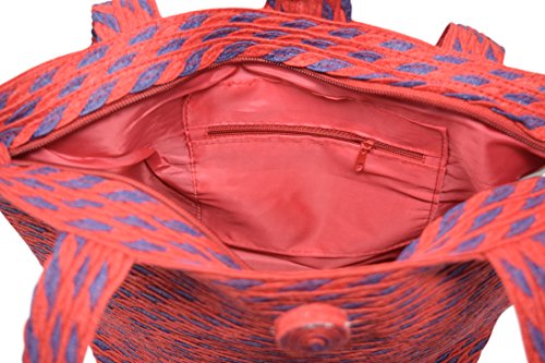 Red Hatters Design Red and Purple Purse Shoulder Handbag With Double Handles and Zipper Closure