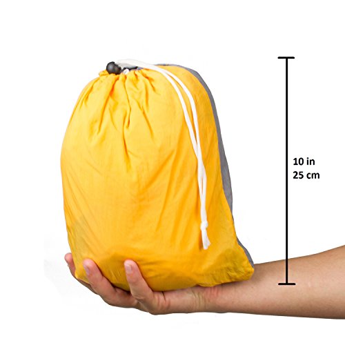 ATTACHED STUFF SACK: When packed into the attached stuff sack the dimensions are 10 x 8 x 5 inches and the Nylon Hammock weighs only 2 pounds (including the two tree straps & carabiners).