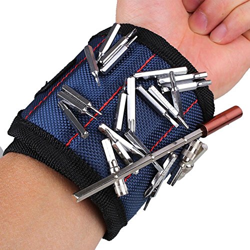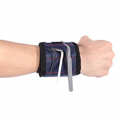 WristBand Tool Holder with 3 Powerful Magnets Wrist Arm Strap Holding Drill Bits, Nails, Screws, Bolts, Screwdriver Bits, Small Metal Tools(Blue)